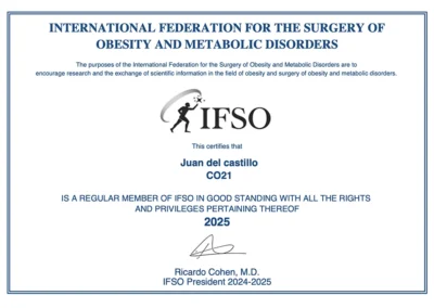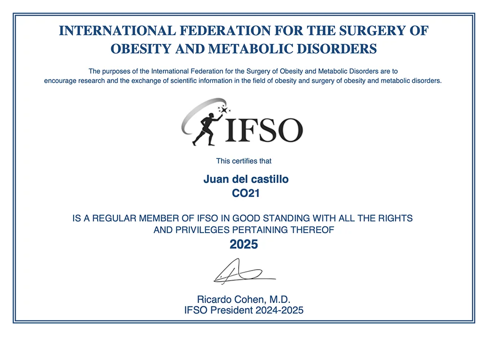 - Miembro IFSO: Federación Internacional de Cirugía Bariátrica y Metabólica.
